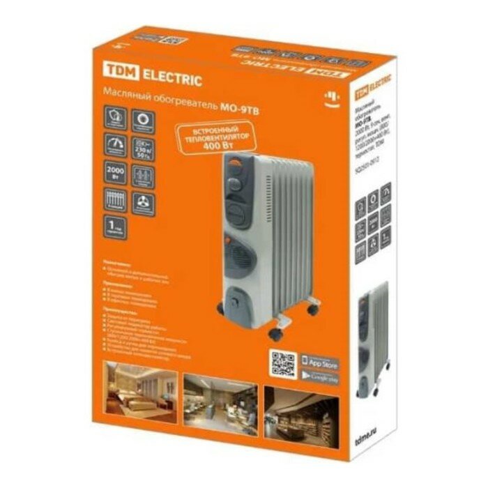 СохранитьМасляный обогреватель TDM МО-9ТВ, 2000 Вт, 9 секций, вентилятор, регулировка мощности 800/1200/2000+400 Вт, термостат, SQ2501-0912 интересное: