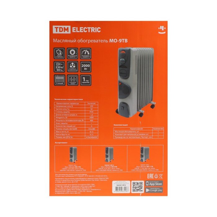 Радиатор масляный Tdm Electric МО-9ТВ, 9 секций, 2000 Вт