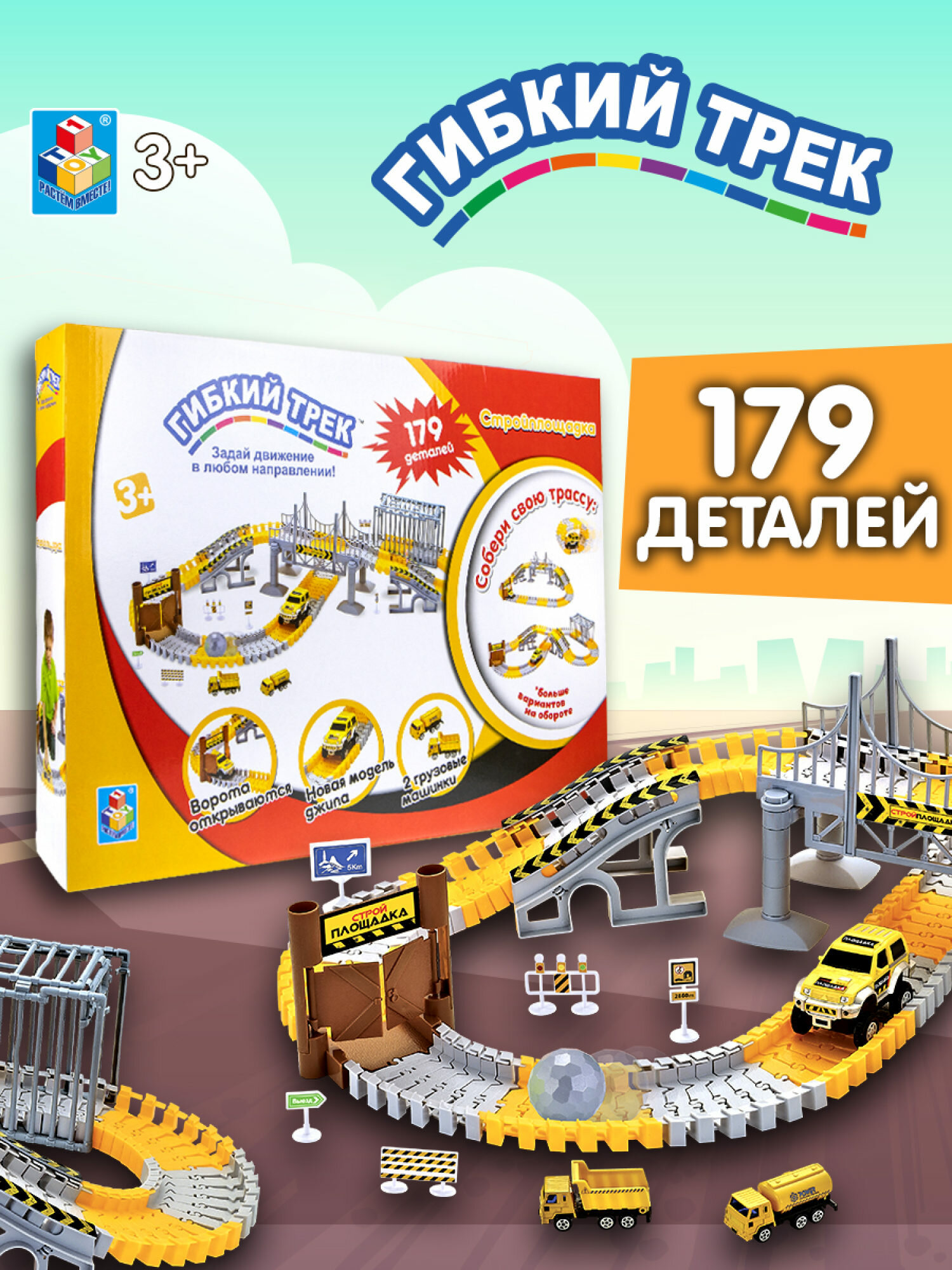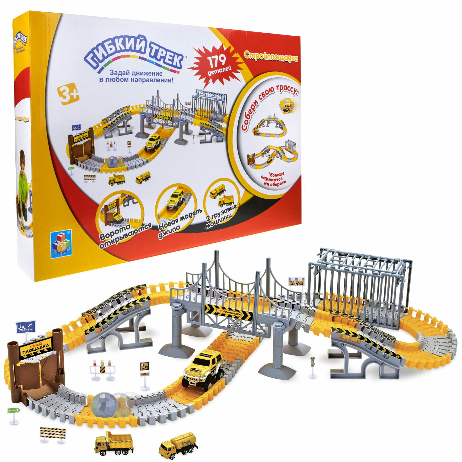 1toy гибкий трек "Стройплощадка"179 дет, ворота, м интересное: