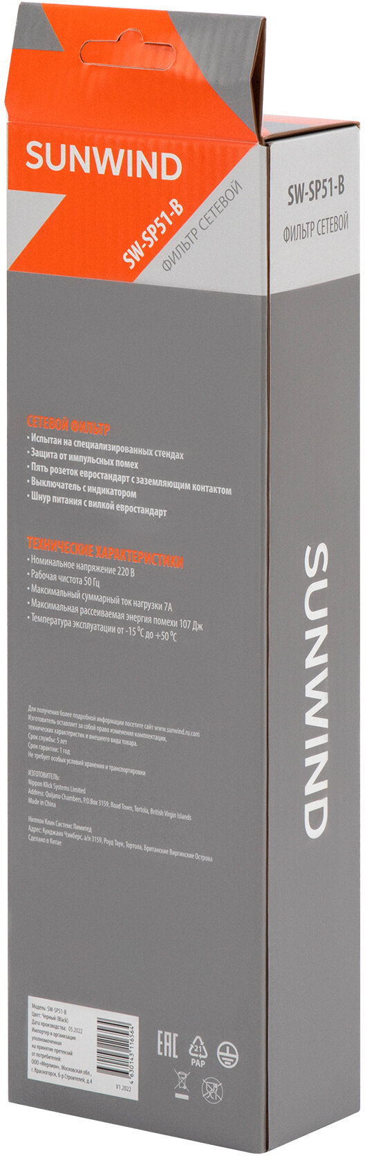 Сетевой фильтр SUNWIND SW-SP51-B, черный интересное: