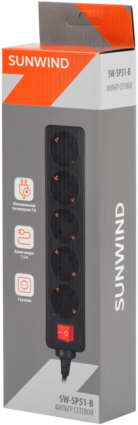 Сетевой фильтр SunWind SW-SP51-B, 1.5м, черный