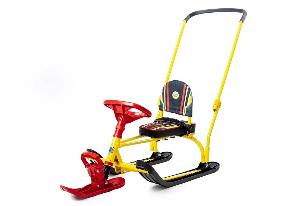 | Комплектация | металлический каркас, лыжи, сиденье со спинкой, руль, родительская ручка, трос |
