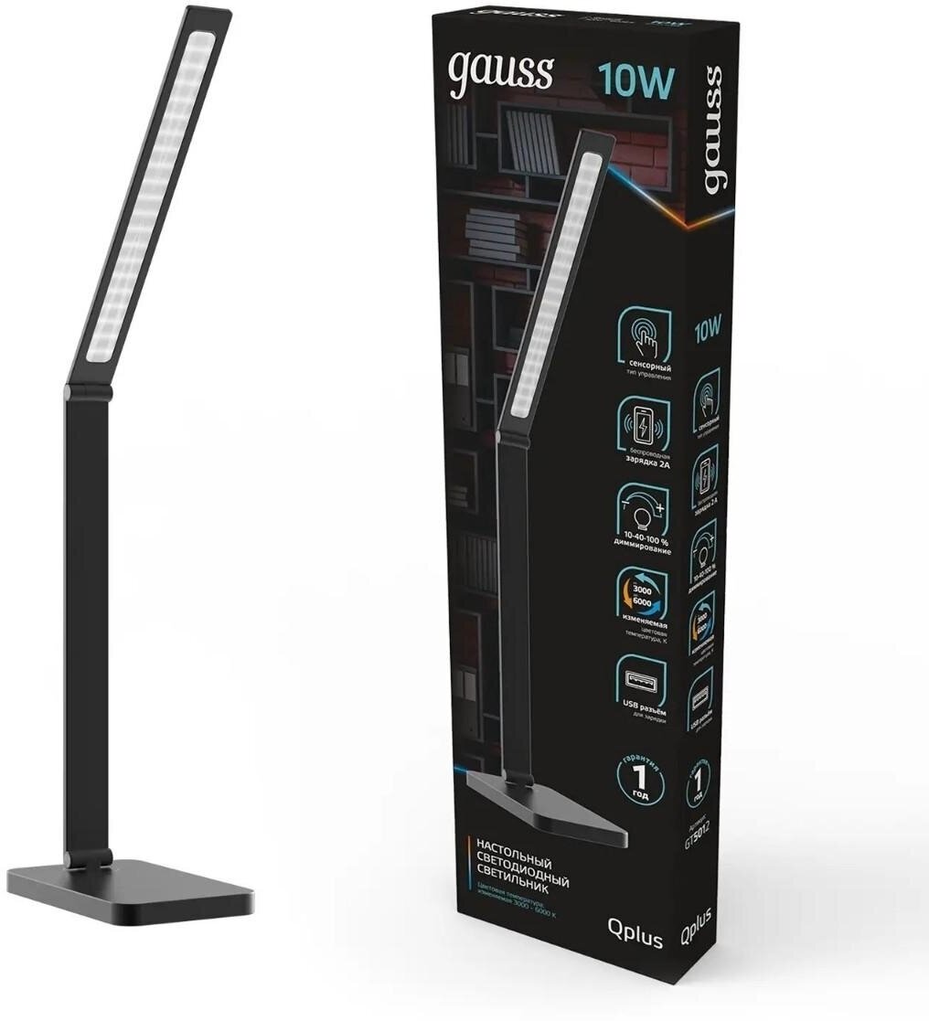 Светильник Gauss Qplus GTL501, 10W 600lm 3000-6000K черн димм Qi USB LED