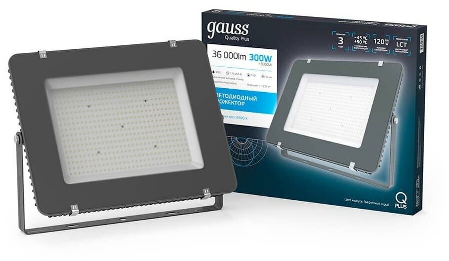 gauss Прожектор светодиодный Qplus 300 W 36000 lm IP65 6500K графитовый серый 1/2 690511300