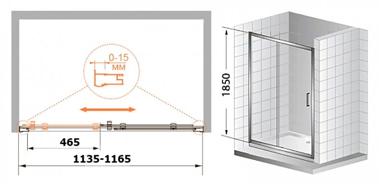 | Дополнительная информация | Комплектация | Душевая дверь - 1 шт. ,Инструкция - 1 шт.;Ширина. мм | 1150;Толщина полотна двери, мм | 5;Материал полотна двери | стекло;Материал профиля | алюминий;Монтаж | на поддон/напольный;Поверхность | глянцевая;Дополнительная информация | дверь имеет регулируемую ширину на 3 см; |