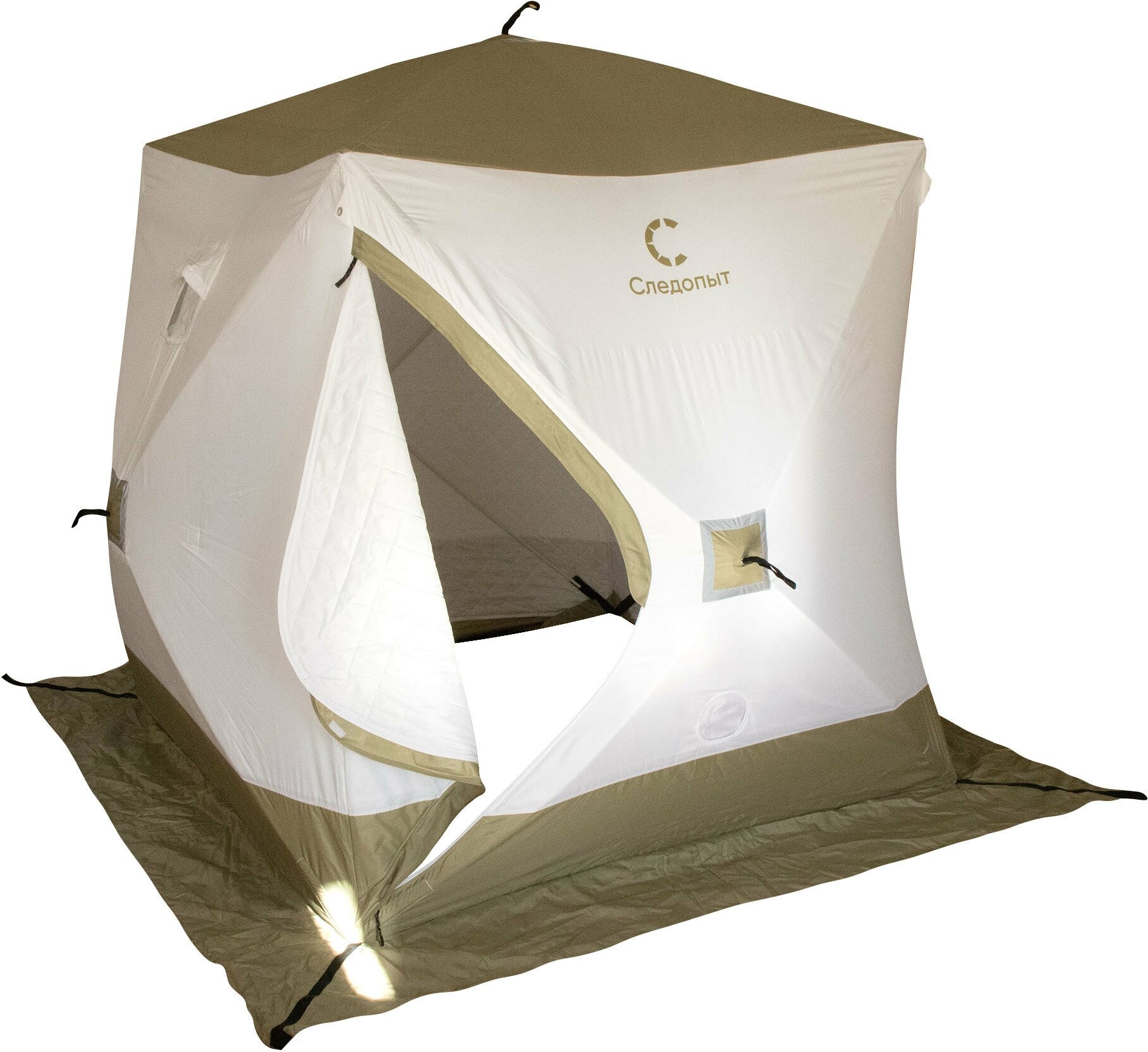 Палатка зимняя куб Следопыт Premium, 2,1х2,1 м, 4-х местная, 3 слоя, цвет белый/олива 9316779 .