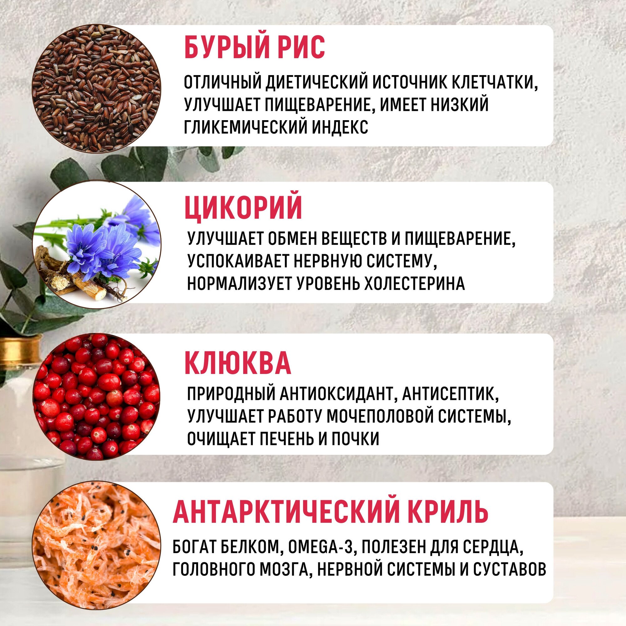 - полезные компоненты - здоровые ингредиенты - низкозерновой состав |