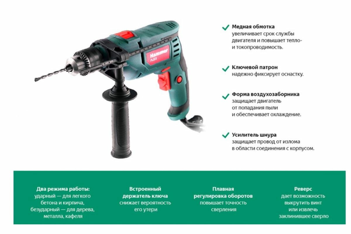Дрель ударная HAMMER UDD710D 710Вт интересное: