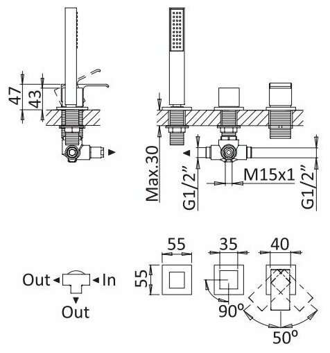 Смеситель с душевой лейкой JUGUNI JGN0624 0402.755,