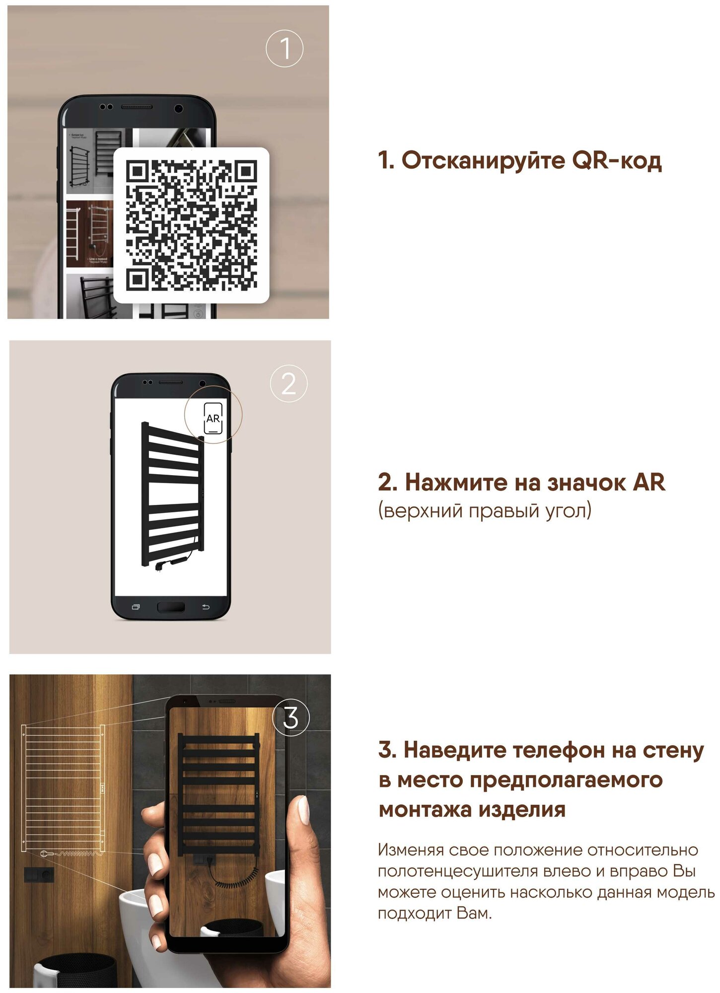Полотенцесушитель Электрический Тругор Пэк сп 5 П 60х50 черный ВГП