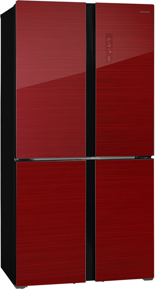 Холодильник HIBERG RFQ-500DX NFGR inverter отдельностоящий, 4 двери, 545 л, красное стекло с полоской