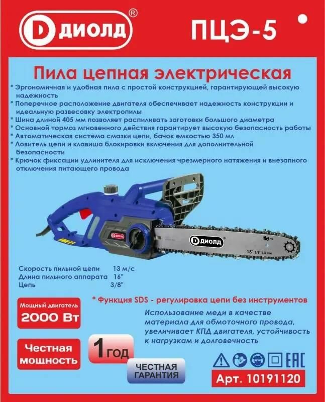 Электрическая пила диолд ПЦЭ-5 2000 Вт интересное: