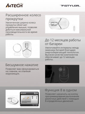 Беспроводная мышь A4Tech Fstyler FG12S, белый