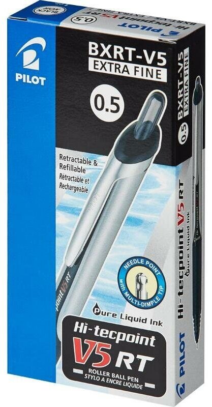 Ручка-роллер Pilot BXRT-V5-B Hi-Tecpoint, 0,5мм, автомат, с жидкими чернилами, толщина линии 0,25мм, черная