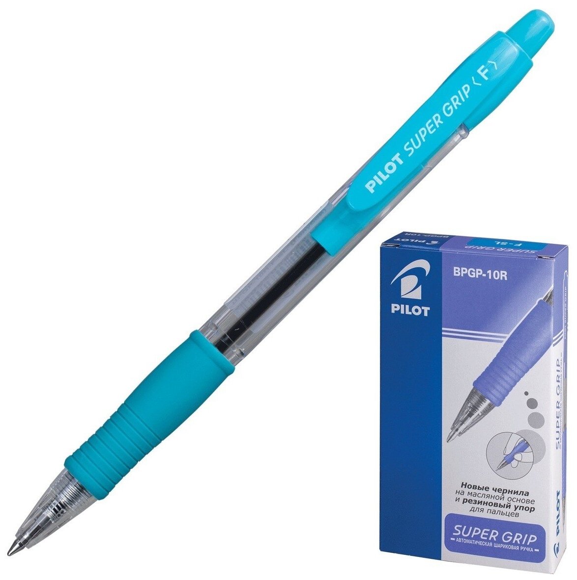 Ручка шариковая масляная автоматическая с грипом PILOT "Super Grip", синяя, голубые детали, узел 0,7 мм, линия письма 0,32 мм, BPGP-10R-F