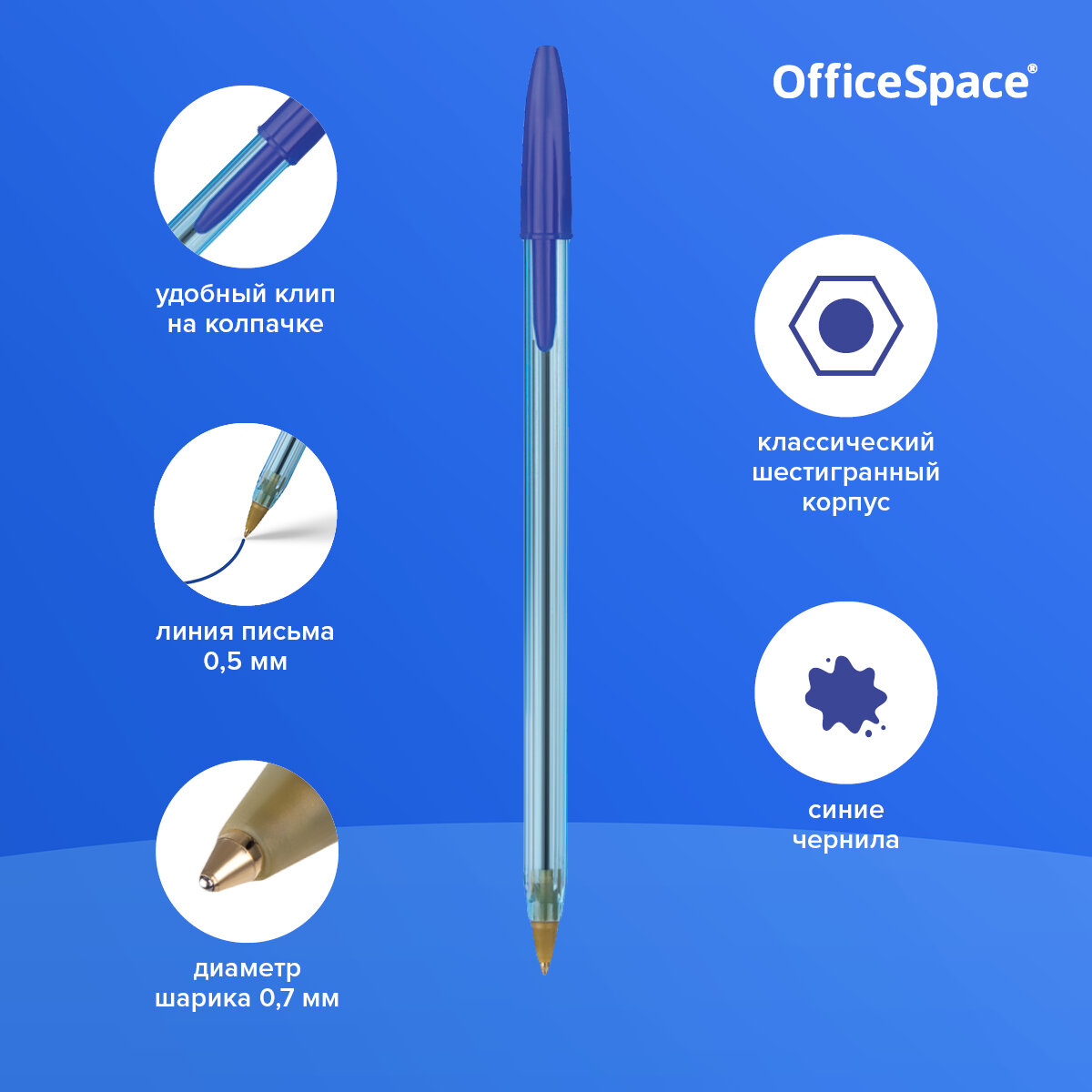 Ручка шариковая OfficeSpace LC-Blue (0.7мм, синий цвет чернил) 50шт. (BPTN_42993)