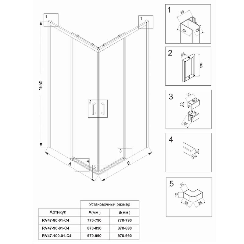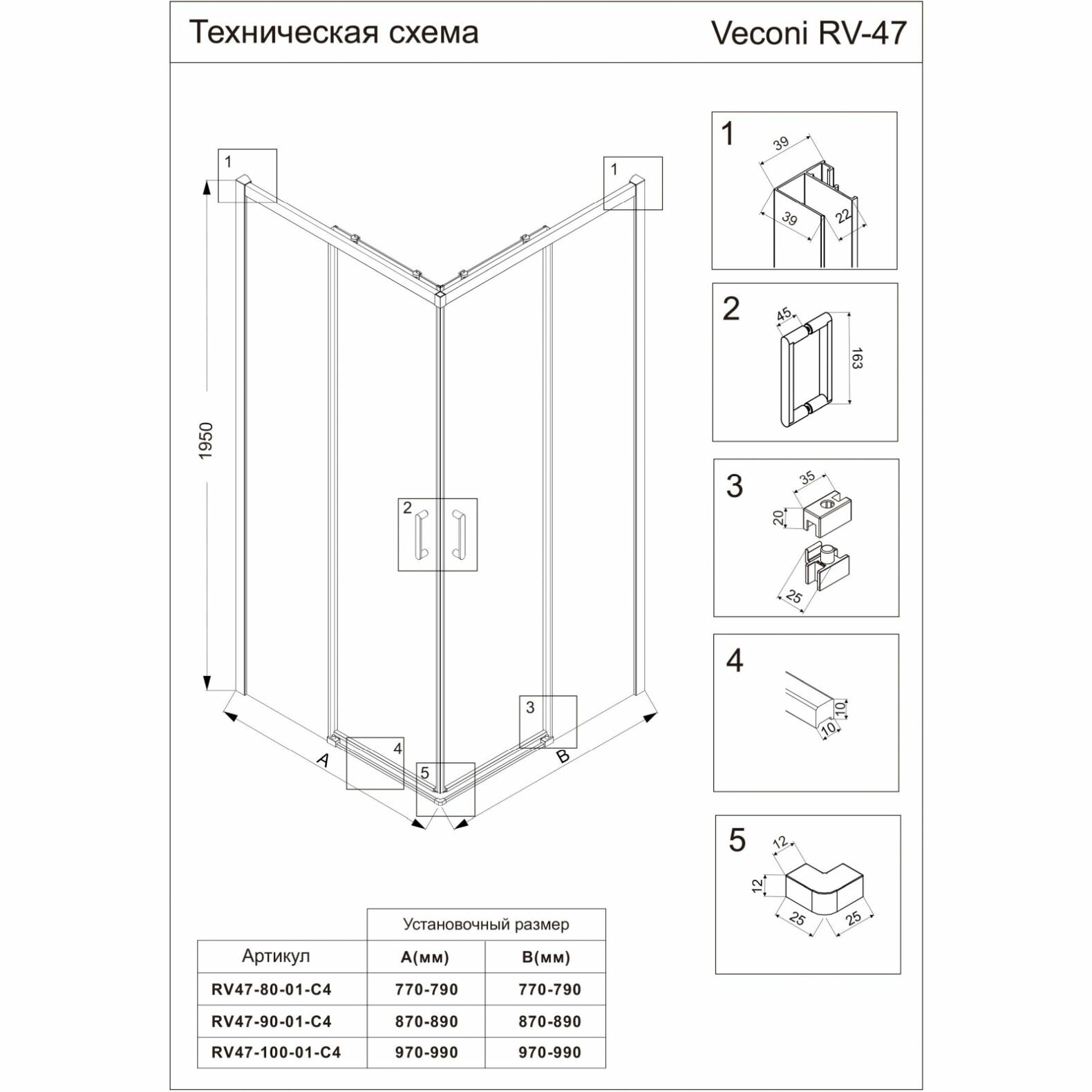 Душевой уголок Veconi Rovigo 100x100x195 см стекло прозрачное профиль хром механизм раздвижной (RV47-100-01-C4) интересное: