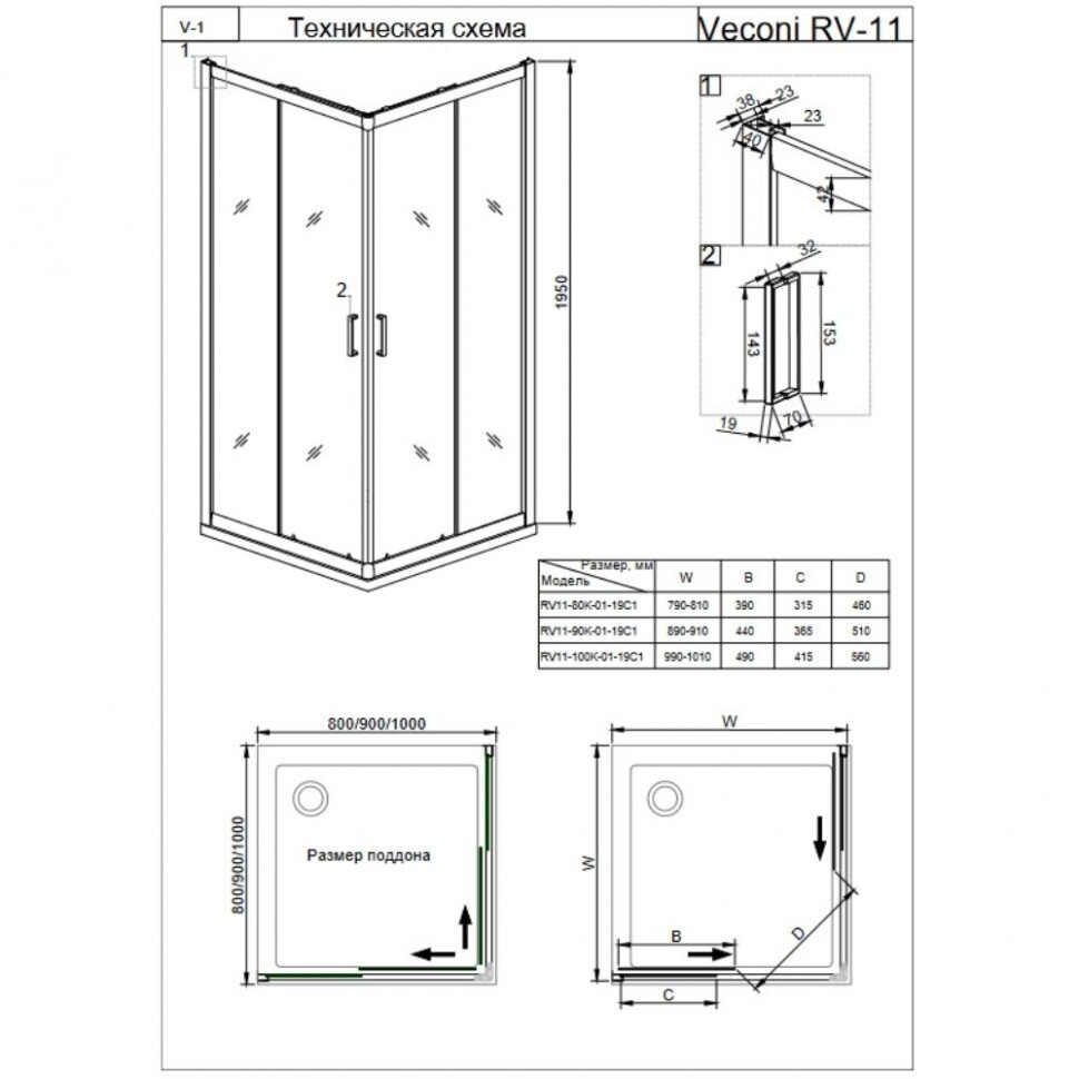 Душевой уголок Veconi Rovigo RV11-90-01-C5 90х195 см профиль хром, стекло прозрачное интересное:
