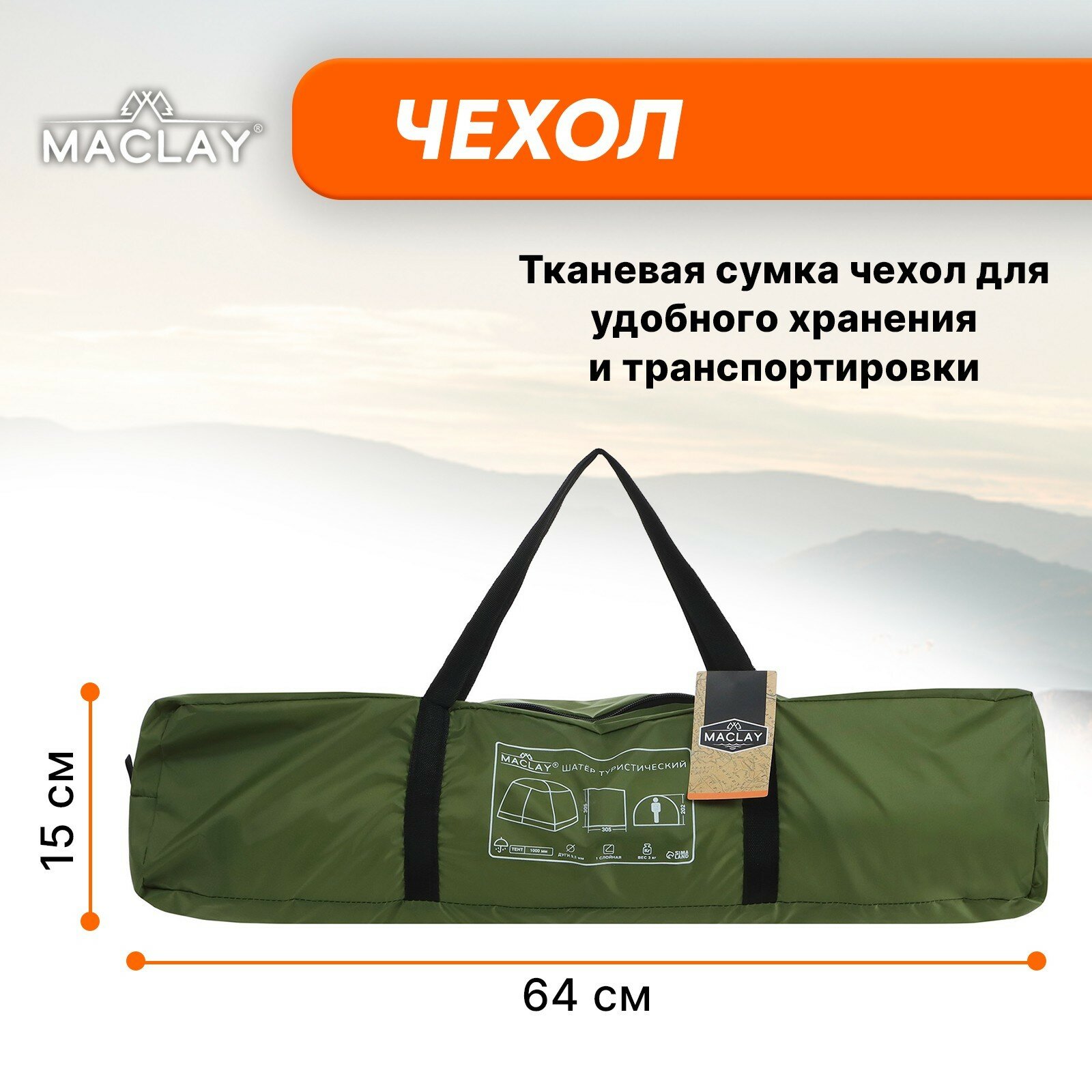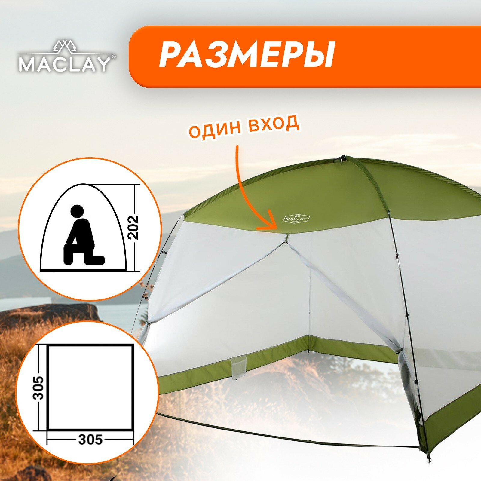 Шатёр туристический, однослойный, р. 305 х 305 х 202 см, интересное: