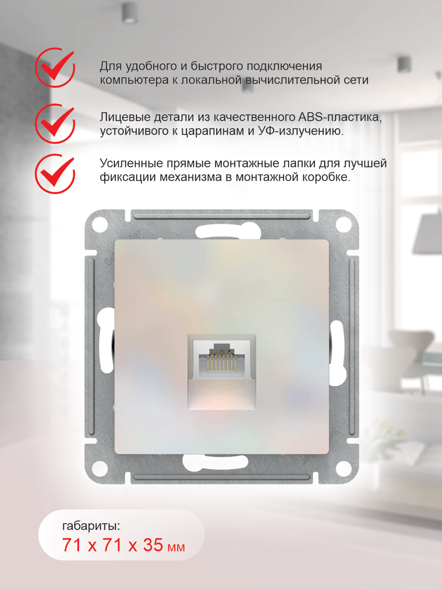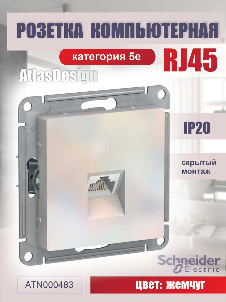 Systeme (Schneider) Electric ATLASDESIGN розетка компьютерная RJ45, механизм, жемчуг ATN000483