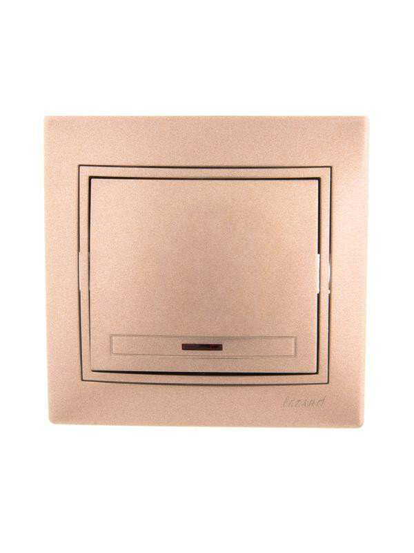 Выключатель 1-кл. СП Mira 10А IP20 с подсветкой со вставкой свет. корич. перламутр. LEZARD 701-3131-111