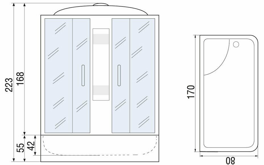 Душевая кабина River NARA 170x80 высокий поддон, матовая, с крышей