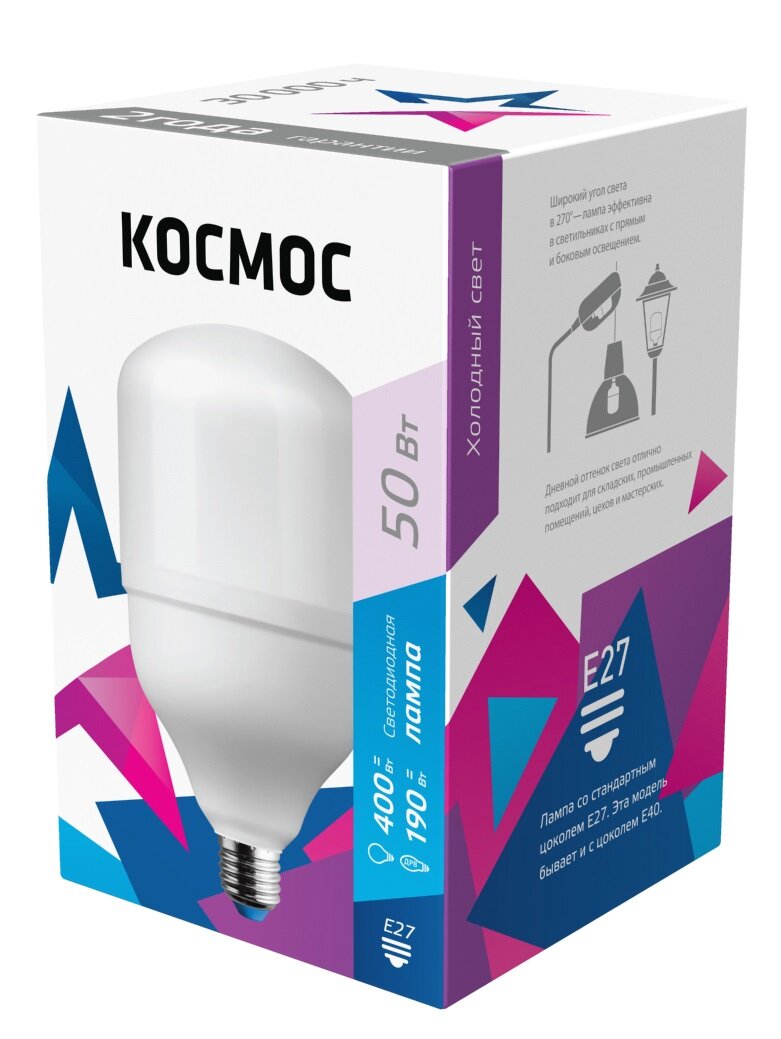 Лампа светодиодная Космос 50W E27 6500k хол.бел. HW 762641 LksmHWLED50WE2765