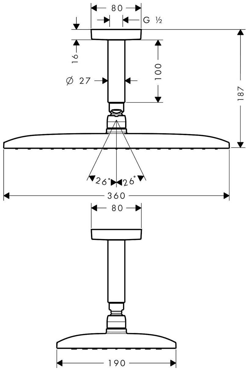 Верхний душ hansgrohe Raindance E 360 AIR 1jet потолочный, хром 27381000