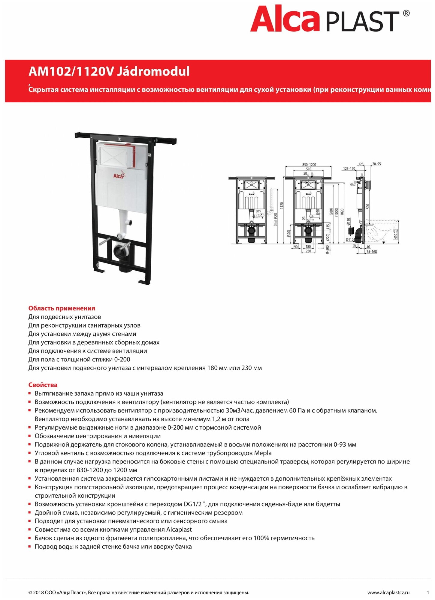 Alca Plast Инсталляция для унитазов AlcaPlast Jadromodul AM102,1120V с возможностью вентиляции