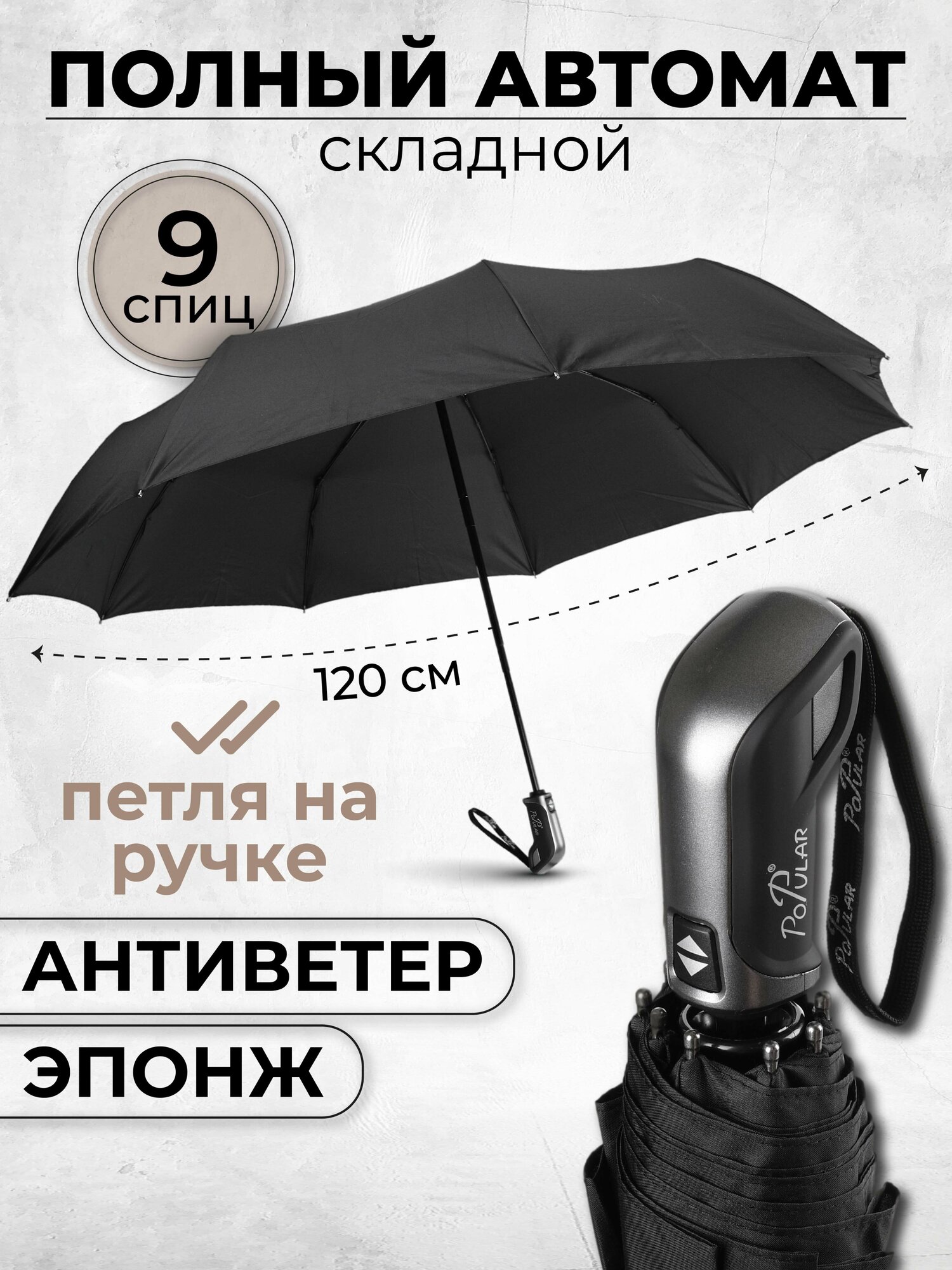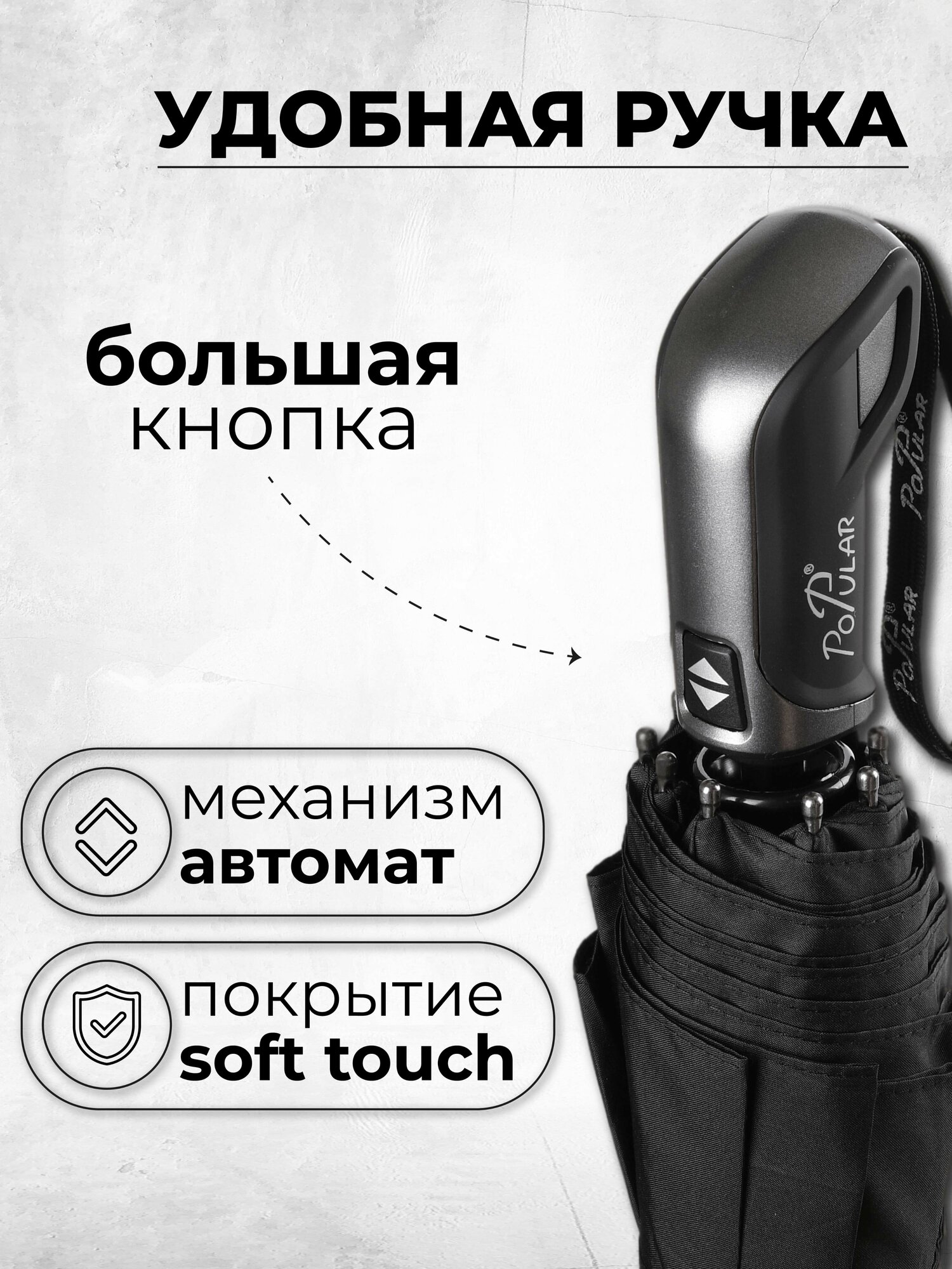 Мужской черный складной зонт Popular Umbrella автомат A301/1611A