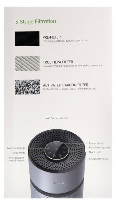 СохранитьОчиститель воздуха Kyvol Air Purifier EA320 (Vigoair P5) Серебристый, Wi-Fi, в комплекте с адаптером модели GQ18-120150-AG интересное: