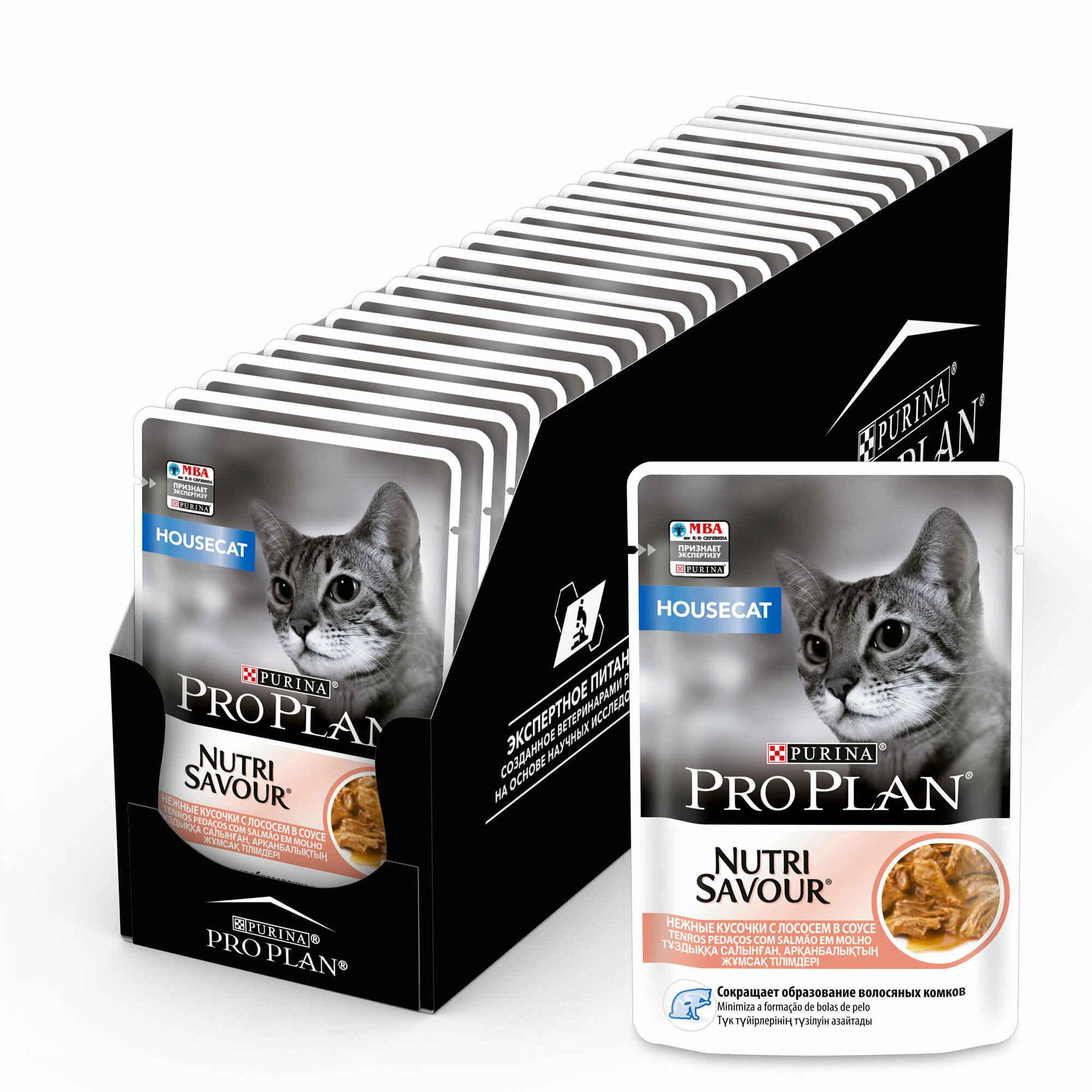 Корм для кошек PRO PLAN Housecat для домашних, с лососем в соусе пауч 85г (упаковка - 26 шт)