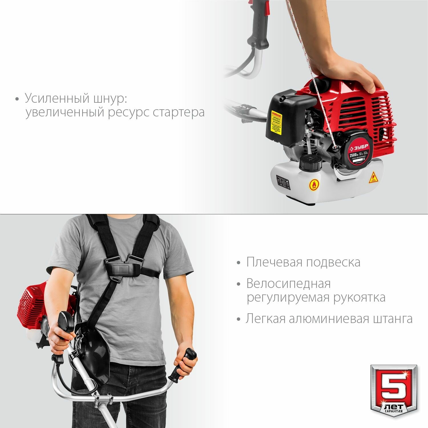 ЗУБР КРБ-2500 бензокоса, 2.5 кВт / 3.3 л.с., 52 см3
