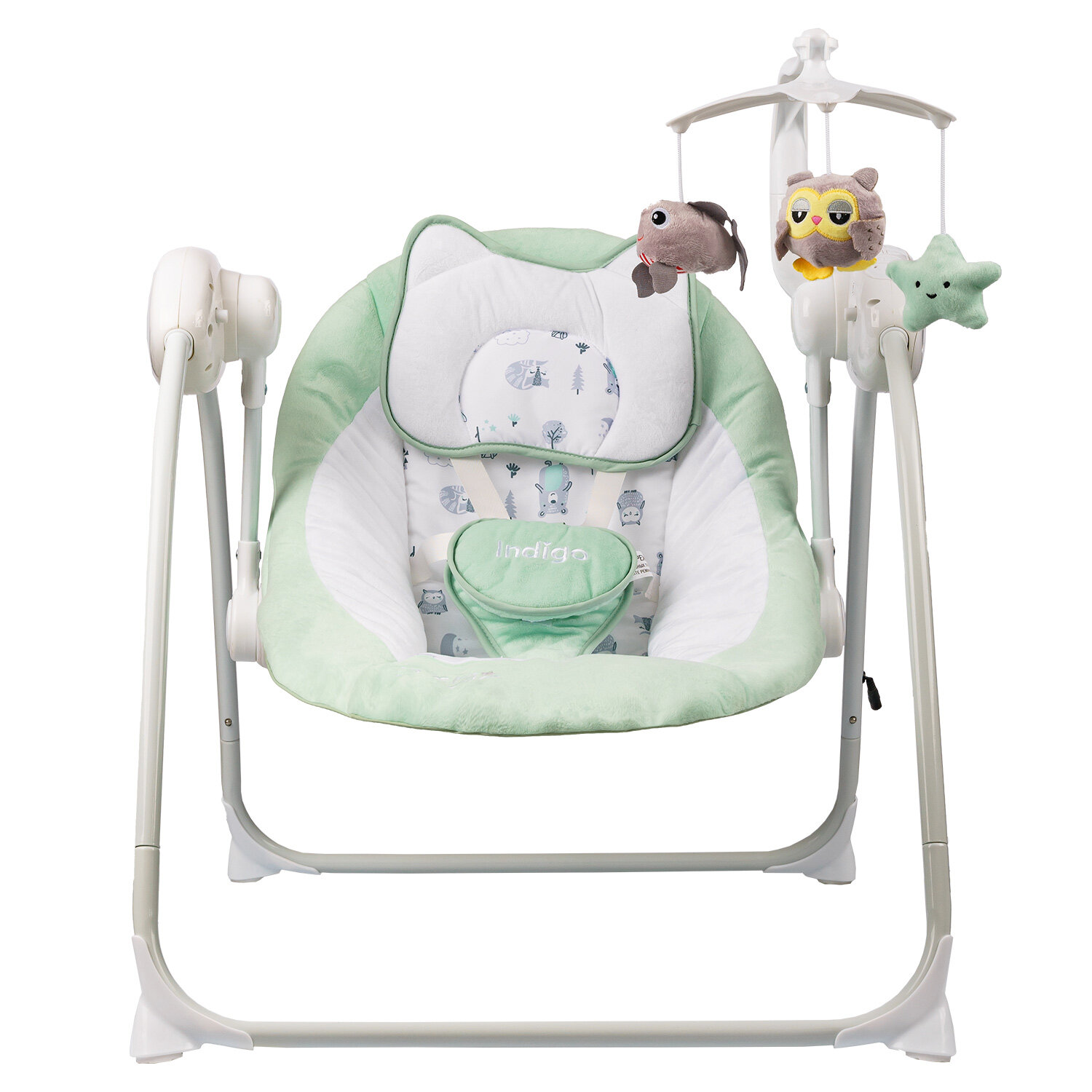 Электронные качели Indigo STAR (0-9 кг), с адаптером, п/у, 12 мелодий, 5 скоростей, москитка, мятный