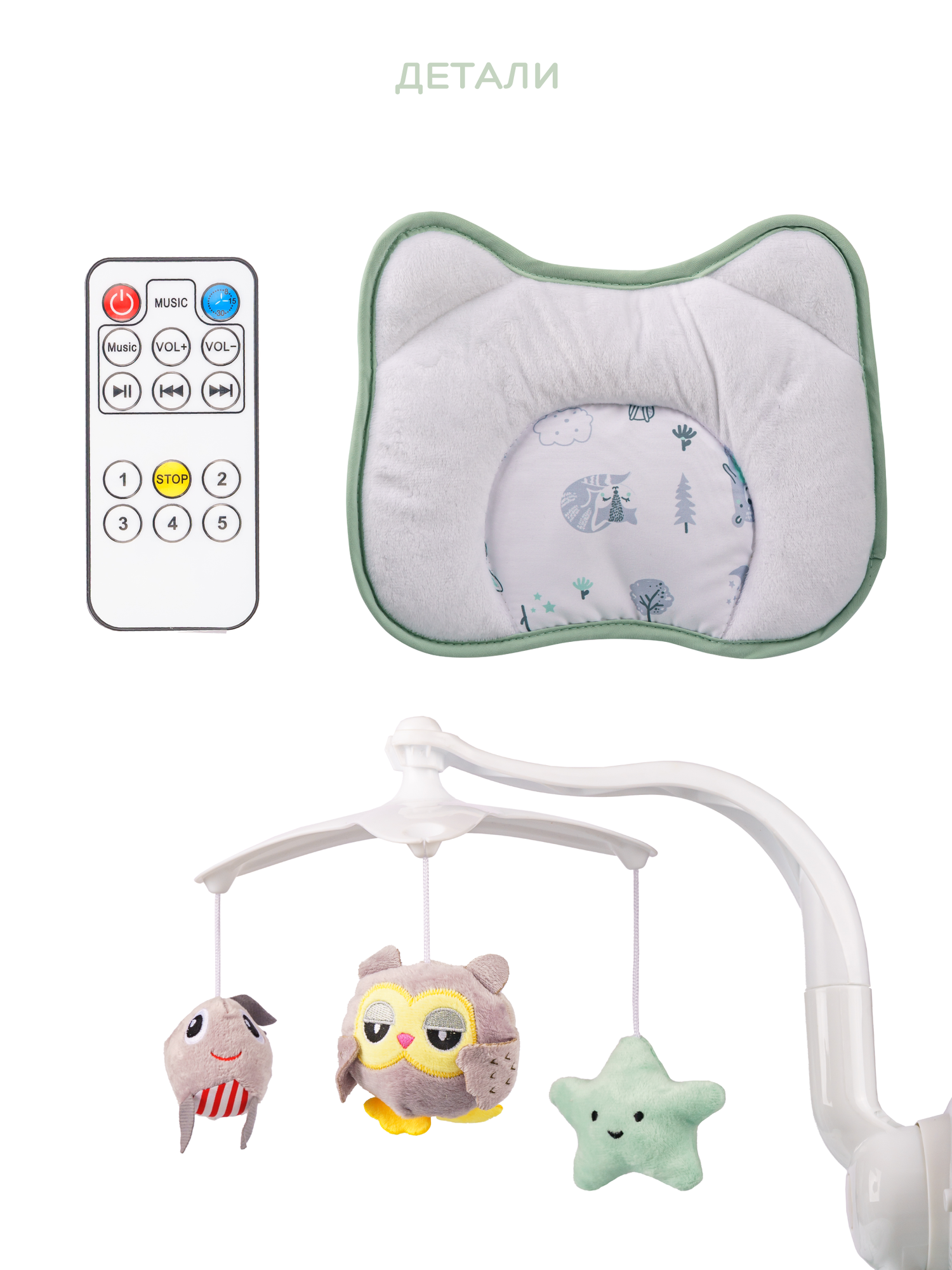 | Особенности | пульт ДУ / работа от батареек / таймер музыки / таймер укачивания |