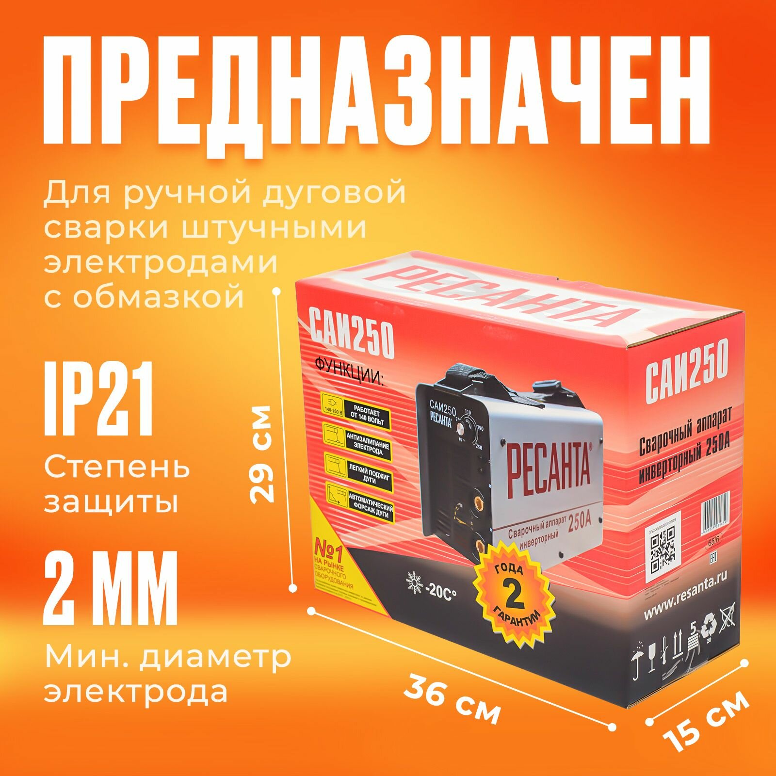 РЕСАНТА САИ-250 инвертор сварочный 10-250А 2-6мм / РЕСАНТА САИ 250 сварочный аппарат 10-250А 2-6мм