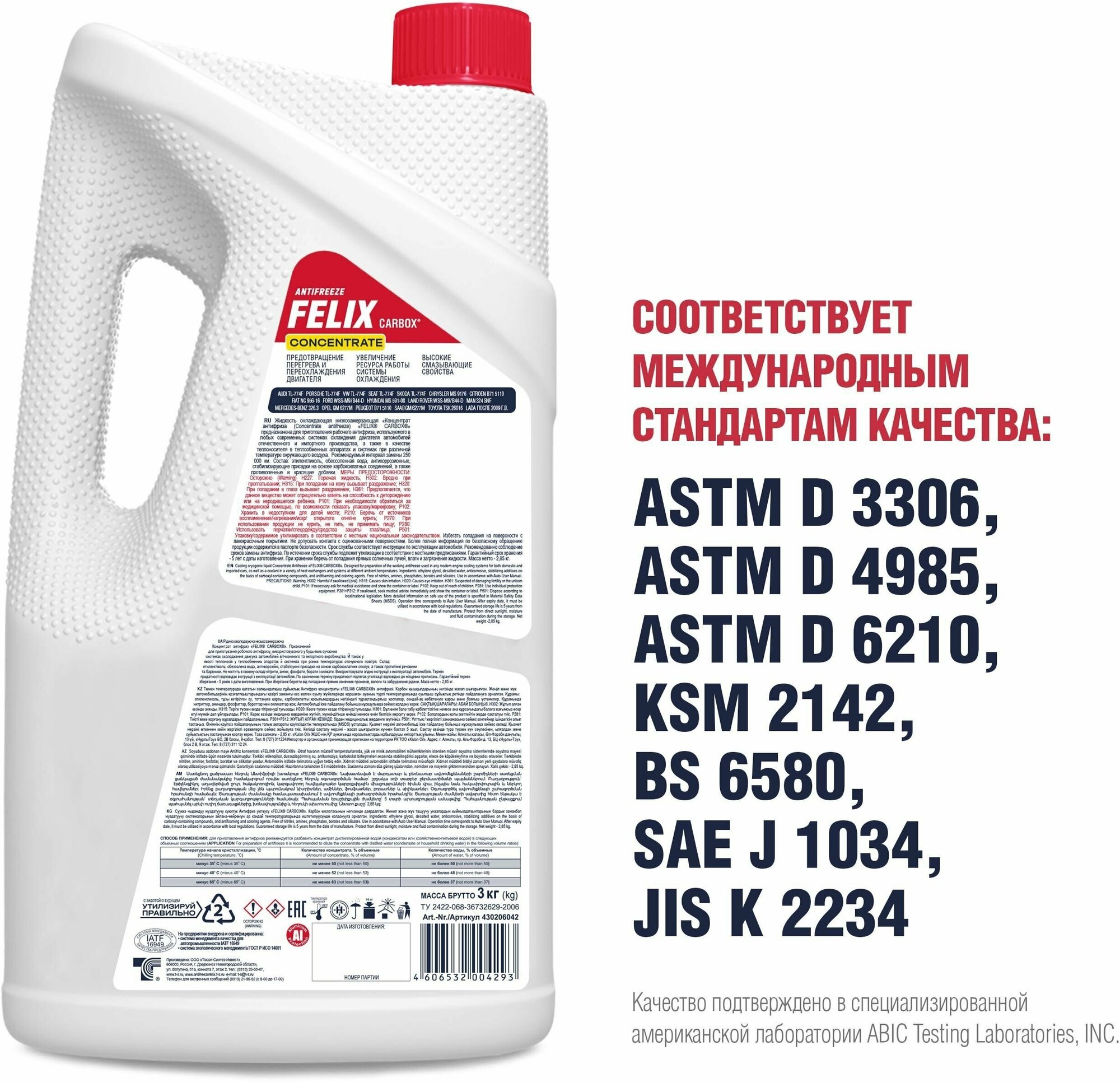 FELIX 430206042 Антифриз G12+ Carbox 3 кг концентрат красный 1шт