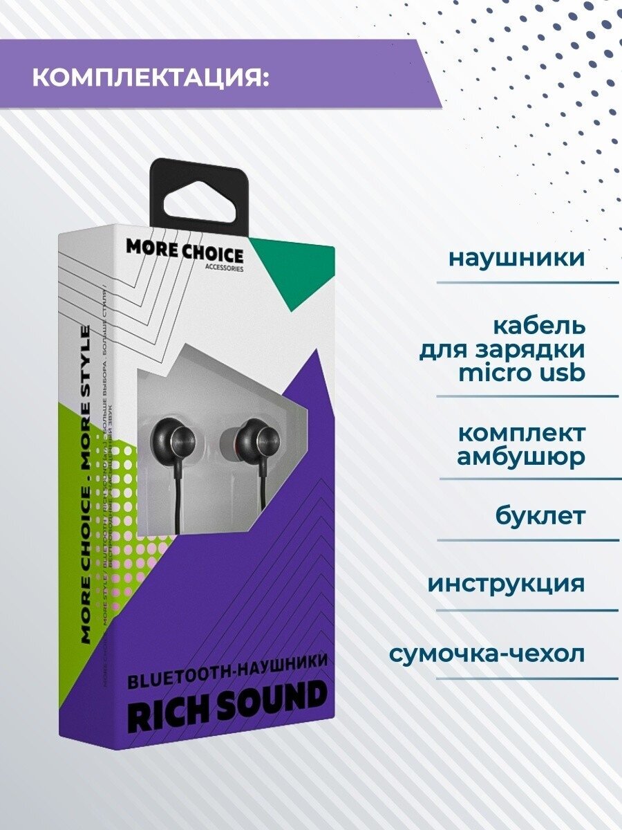 Наушники More choice Bluetooth вакуумные с шейным шнурком BG6 черный