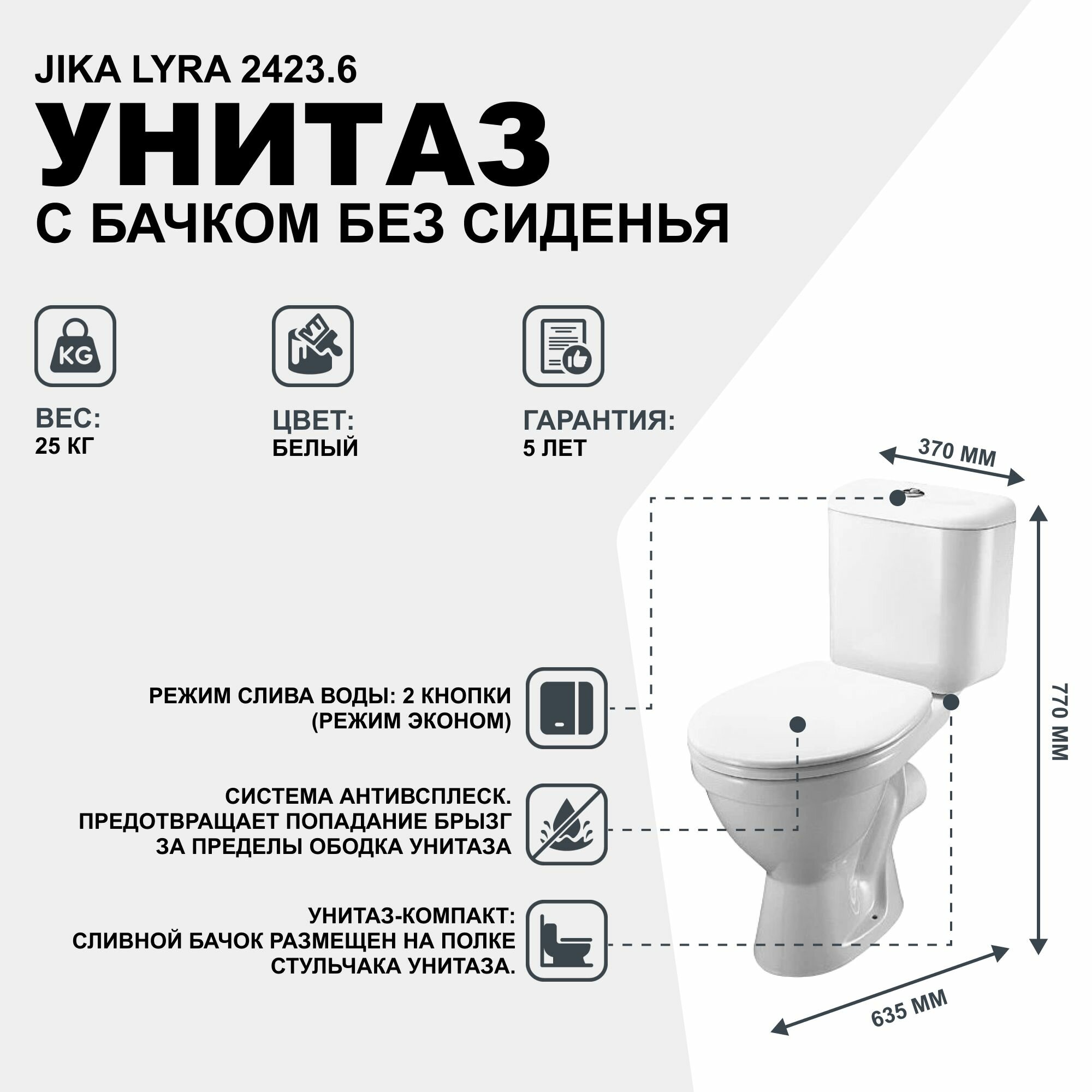Унитаз-компакт Jika LYRA 2423.6 000 242 белый интересное: