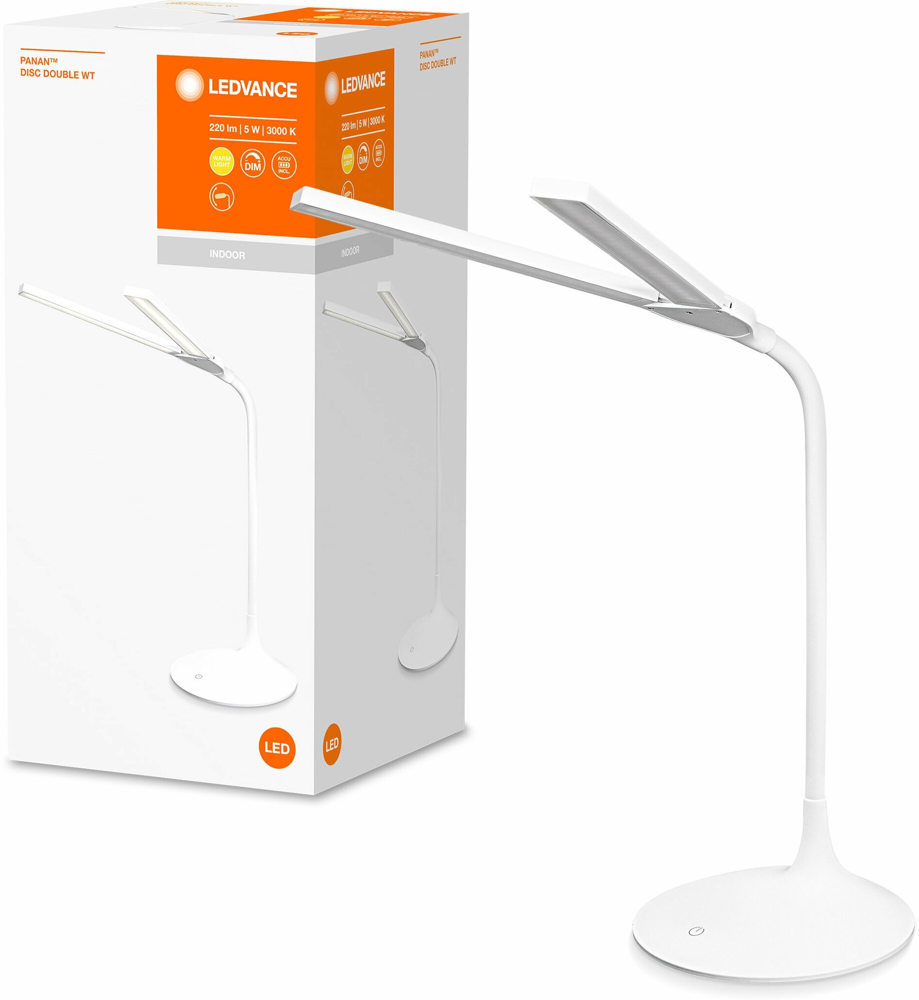 PANAN DISC DOUBLE WT 5W 3000K наст диск / батарея 220Lm 375*400*170mm DIM - свет-к настольный LEDV