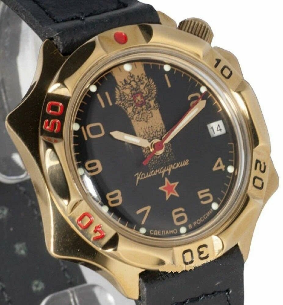 Мужские наручные часы Восток Командирские 53925Б-classic, натуральная кожа, черный