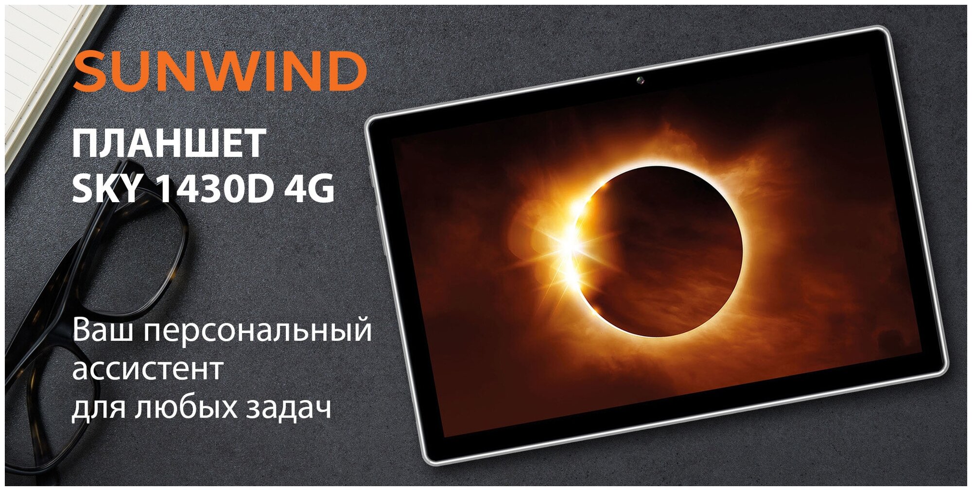 Планшетный компьютер SunWind Sky 1430D 4G T310 4C/4Gb/64Gb 10.1" IPS 1280x800/3G/4G/And11/black/BT/GPS/2Mpix/2M