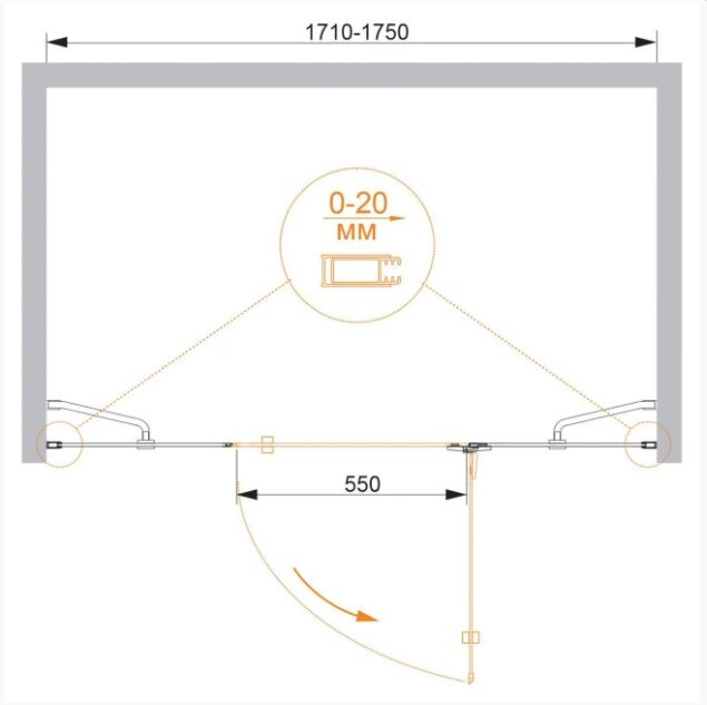 | Дополнительная информация | Ширина. мм | 1700;Материал полотна двери | стекло;Материал профиля | алюминий;Монтаж | на поддон/напольный;Поверхность | глянцевая;Дополнительная информация | дверь имеет регулируемую ширину на 4 см; |