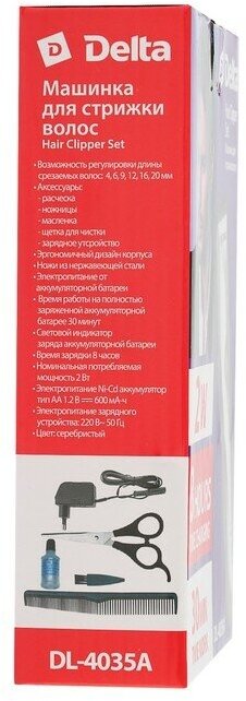 Машинка для стрижки DELTA DL-4035A серебро, 2Вт