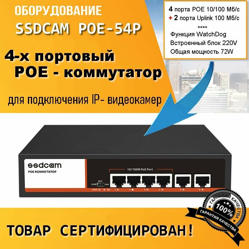 SSDCAM POE-54P. Коммутатор PoE для подключения IP- видеокамер