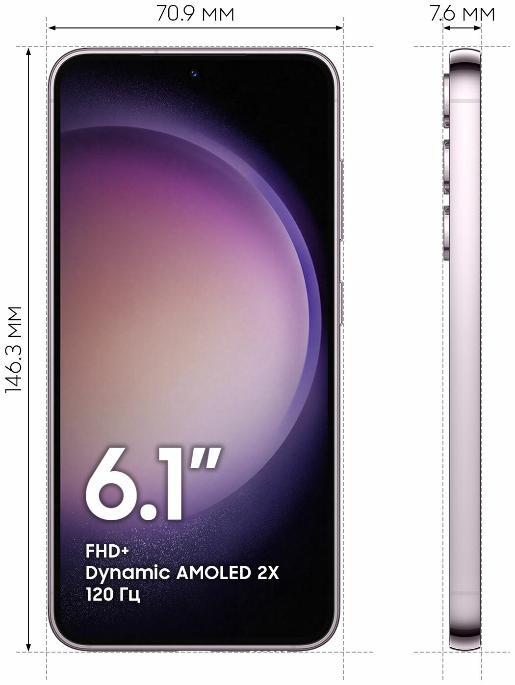 Смартфон Samsung Galaxy S23 8/128Gb, Violet, фиолетовый - AMOLED
