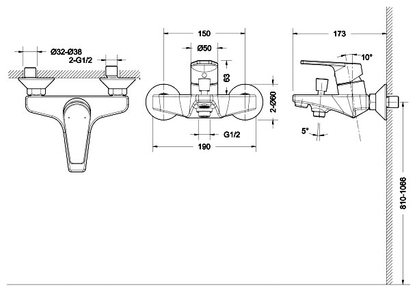 Смеситель для ванны BRAVAT Line F65299C-B-RUS