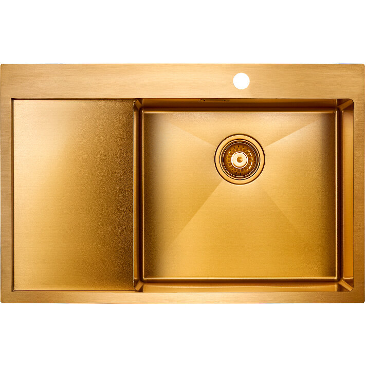 Кухонная мойка из нержавеющей стали AISI 304 Paulmark ELDE, 780х510 мм, мойка справа, PVD покрытие, отверстие под смеситель, врезная / вровень со столешницей, цвет брашированное золото, PM807851-BGR