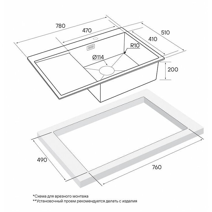 | Установка | врезная / накладная |