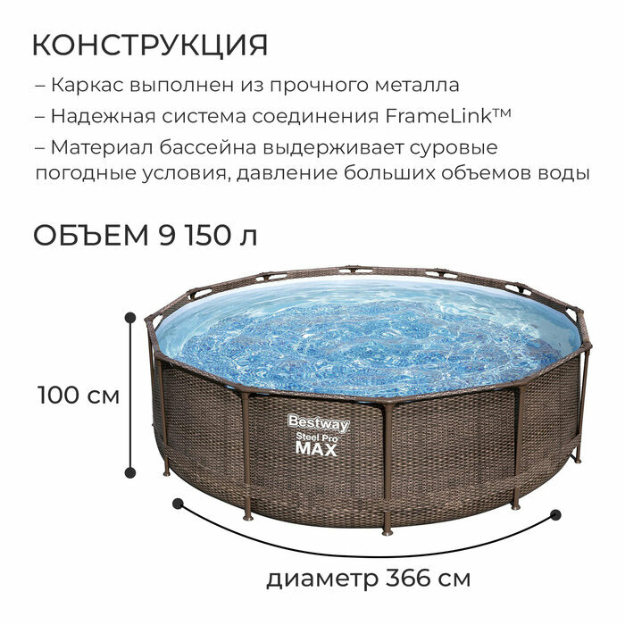 Bestway Бассейн каркасный Steel Pro, 366 х 100 см, фильтр-насос, лестница, 56709 Bestway